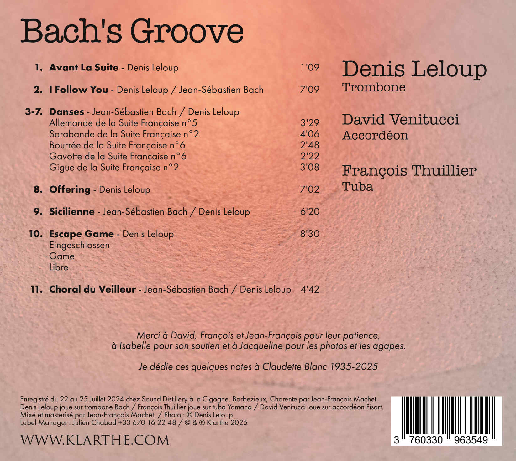 Voici donc un voyage jouissif et pluriel où le trombone, instrument royal ou coloriste, L’accordéon, harmonium de luxe ou harmoniste à bretelles et le tuba, basse continue ou «groove-machine» illustreront à leur manière et en leur temps, le génie musical de J.S. Bach.