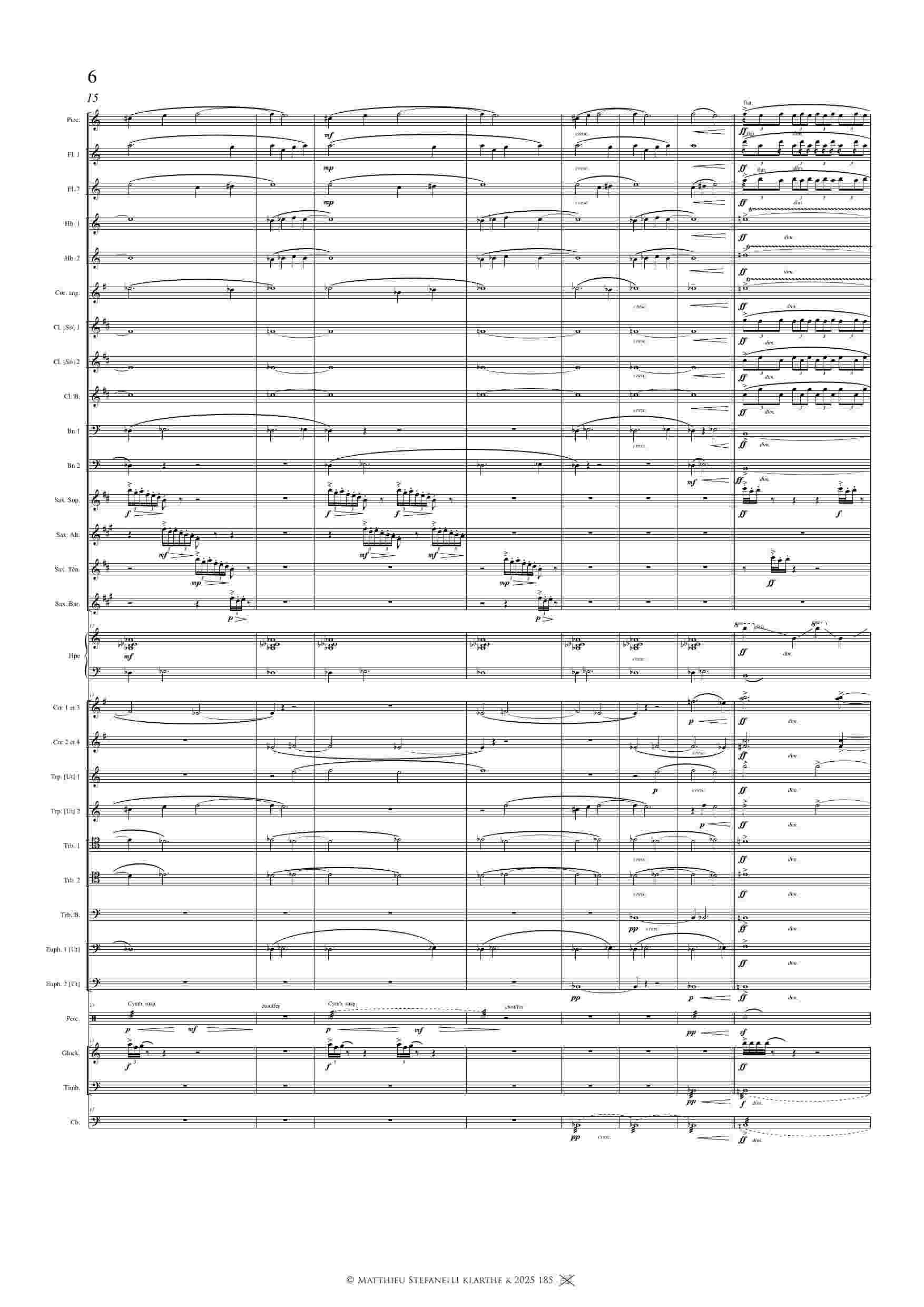 This piece for concert band was commissioned by Nicolas Jortie and the Concert Band of the Aubervilliers Conservatory (CRR). It was composed in 2015. The title is inspired by Chronos, a deity from ancient Greece who personified Time and Destiny. It is a kind of rhythm study for orchestra. The initial musical phrase is constantly changing, not melodically, but rhythmically, metrically, and in its orchestration. Throughout the three movements and the Interlude, the performers must master the difficulties of rhythm, changes in meter and tempo, and the transitions between instruments.